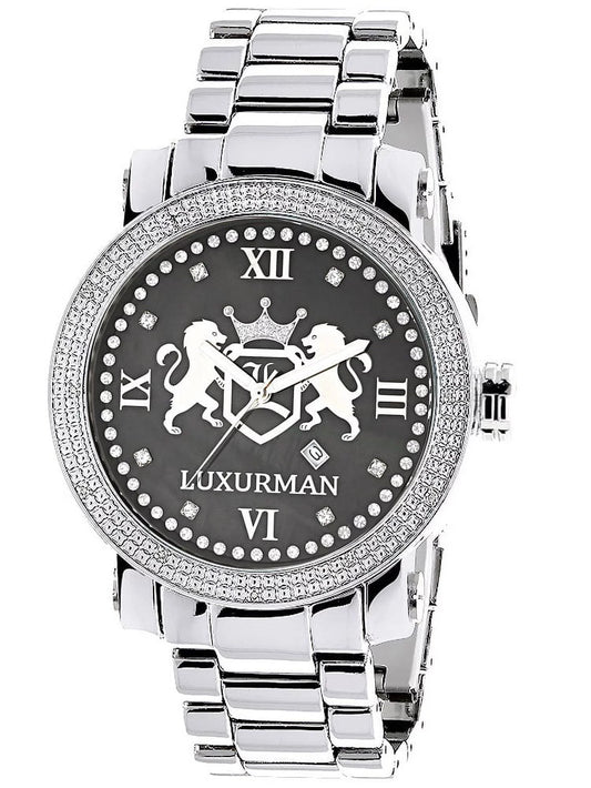 Designer Large Watches: Phantom Real Diamond Watch for Men 0.12Ct Black MOP Metal Band + Leather Straps