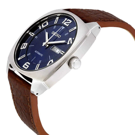 Men'S Recraft Luminous Blue Dial Silver Tone Brown Leather Watch SNKN37